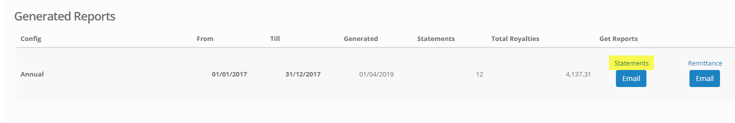 From within Royalties Manager, once you have generated your royalty statements, it is possible to download your royalty statements. You can do this both individually or in bulk.