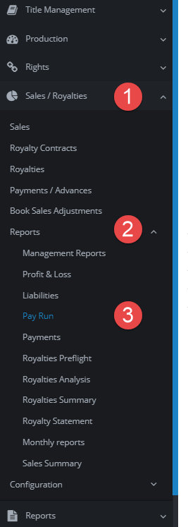 1. Navigate to Sales/Royalties from the main menu on the left of your screen.