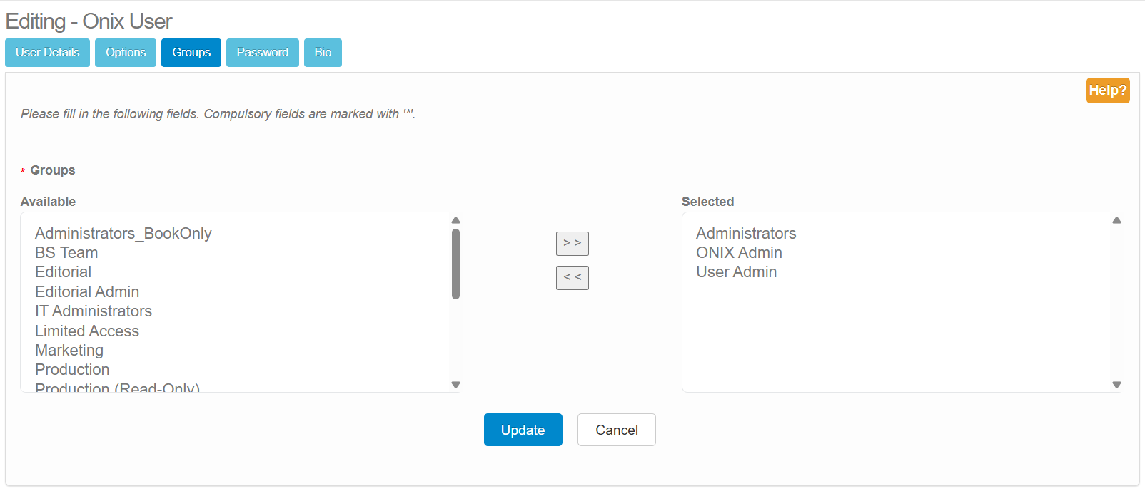 To add your user to the required groups, navigate to General > User Admin and select the relevant username. You can then add and remove this user from each group via the Groups Tab.