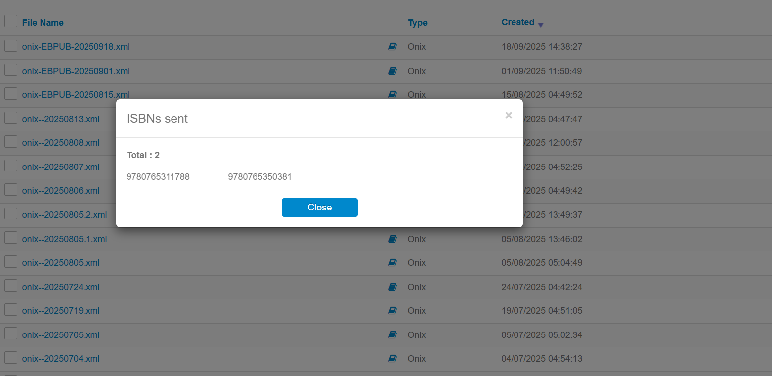 On a destination sending Onix, you can download sent Onix files for a closer review.