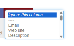 Columns can be remapped by clicking on the column name in purple. If you would like the system to ignore a column during the upload, you can select Ignore this column.