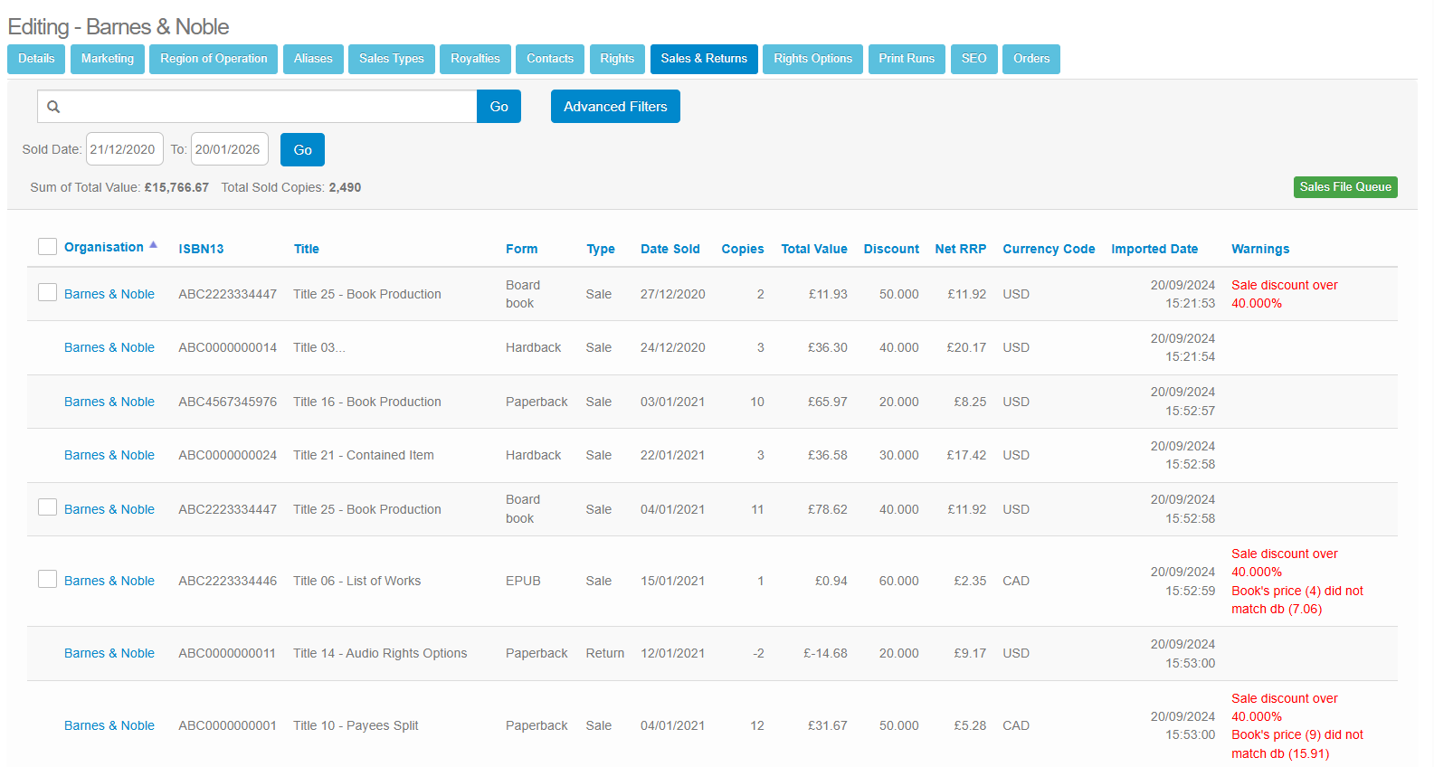 In order to check how many titles may have your organisation logged as a supplier, you can use the Advanced Filters function in the main Book List.