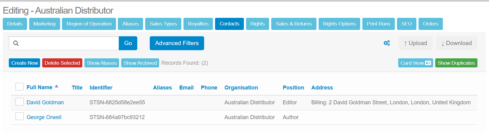 If the organisation is connected with a title that has shipped, you will be able to see that information listed in this screen.