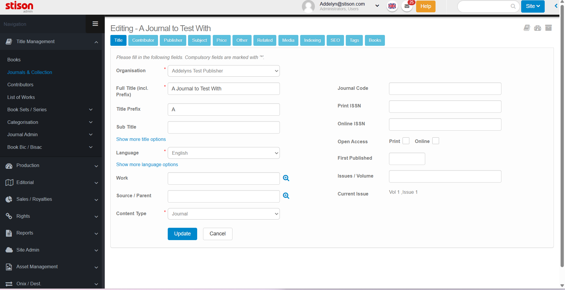 In addition to storing your book data in Title Manager, you can also keep track of your Journals. Journal information is stored within the Journals & Collection section in your Stison.