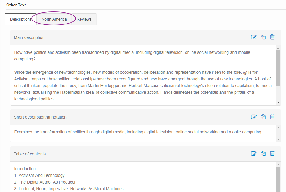 We have now added the ability for you to bulk upload localised Main Descriptions to these sub-tabs in the Blurbs tab. Before completing the upload, ensure that each territory has the Show as localisation box checked in Territory Admin. This will allow them to be displayed as options under the Descriptions - Custom heading when mapping your columns upon upload.