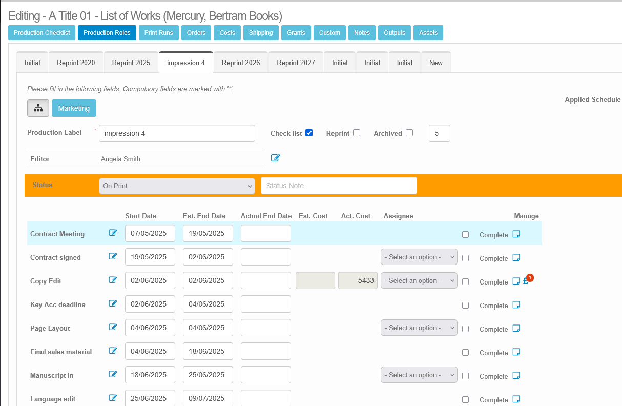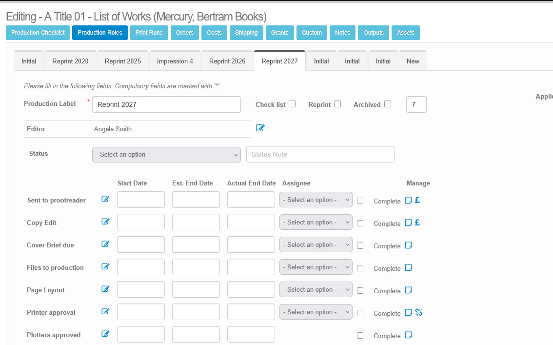 The Production Roles tab allows you to break down each stage of your production process, assign tasks to your department, attach costs, and a whole lot more.